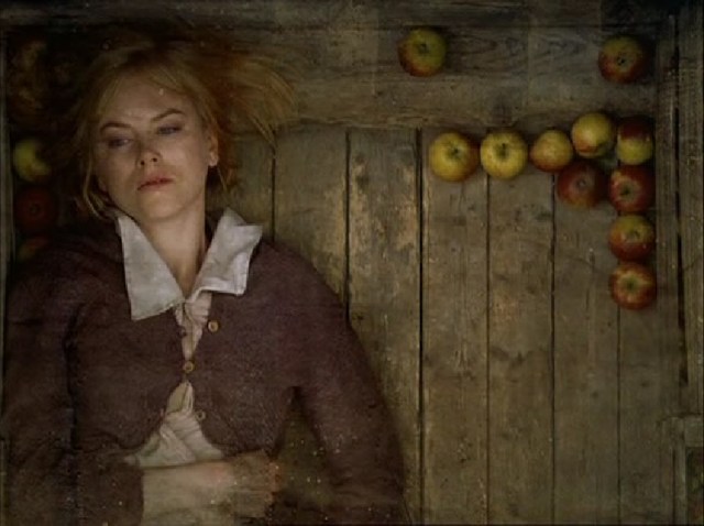 Despite the many jump cuts and absence of musical montages, Dogville has a running time of 179 minutes. This might raise a few eyebrows, but, unlike Breaking the Waves and The Idiots, there aren’t any noticeable scenes that could be removed. In fact, the length allows Nicole Kidman to be worn down so slowly that you might make a double-take when you remember that she is chained to a weight and visited by every male in the village during the night – like any play, the logical conclusion is when it all turns into a Woody Allen film for the final twenty minutes, during which the topics of death and philosophy are discussed until it all burns down.