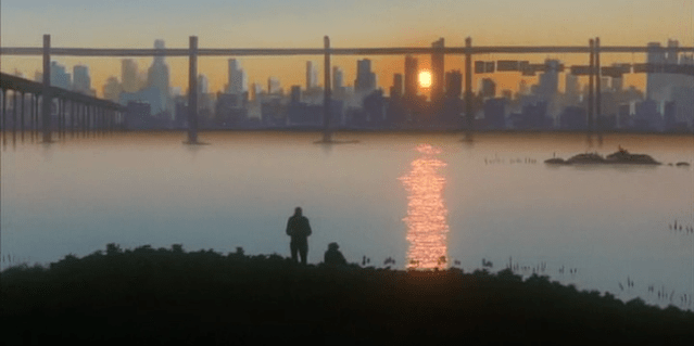 It’s important to know that humans live on the planet Mars in 2071. It’s an anime film, so technology has advanced further than the quality of the screenplay’s dialogue. But, it does look like an immersive gallery of shifting styles and textures. Some of the best moments are possibly too shallow to count as building atmosphere, but it’s fun watching someone cruising in a space ship. Shadows move accordingly, and there’s depth in colour, especially when the lights disappear into the cracks.