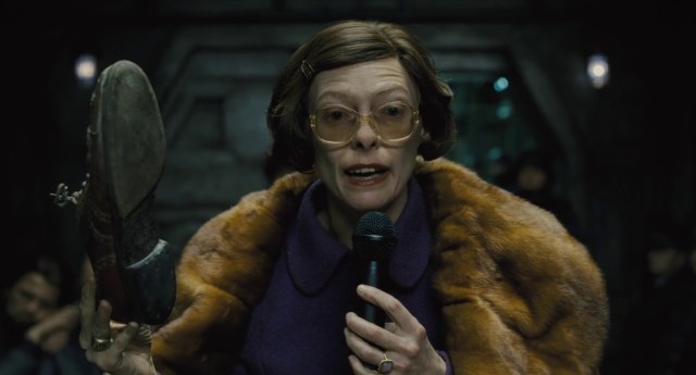 Rather than real life where you can just walk up to the First Class section and take a comfy seat without anyone really caring, the future has wised up: making your way down the corridor is rather like the hammer scene from Oldboy, but with a political allegory which, also like Oldboy, is hammered home repeatedly – it’s interesting stuff, though, especially how a revolution only serves to maintain the political imbalance. The episodic adventure is more hit than miss, which allows for some memorably grotesque touches, especially Swinton’s Thatcher impersonation.